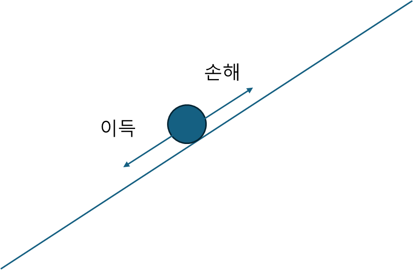 이걸 하나의 선분 그래프라고 생각해보자. 내가 있는 점의 왼쪽은 나보다 낮고, 오른쪽은 나보다 높다. 나는 낮은 곳에 있을 수록 이득이다. 그러면 당연히 왼쪽으로 가야 한다.