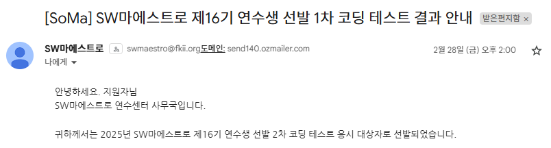 결과는 1차도 합격하였습니다.